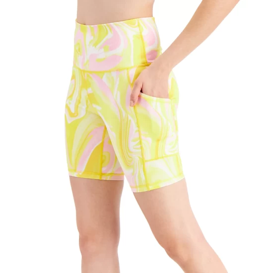 A workout staple in a striking print, ID Ideology’s bike shorts team sleek style with handy cellphone-sized pockets.
